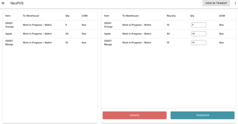 Handle transfer requests seamlessly between warehouses. When a warehouse receives a stock request, NeuPOS makes it simple to process, approve, and track the transfer from source to destination, ensuring inventory accuracy across all locations.